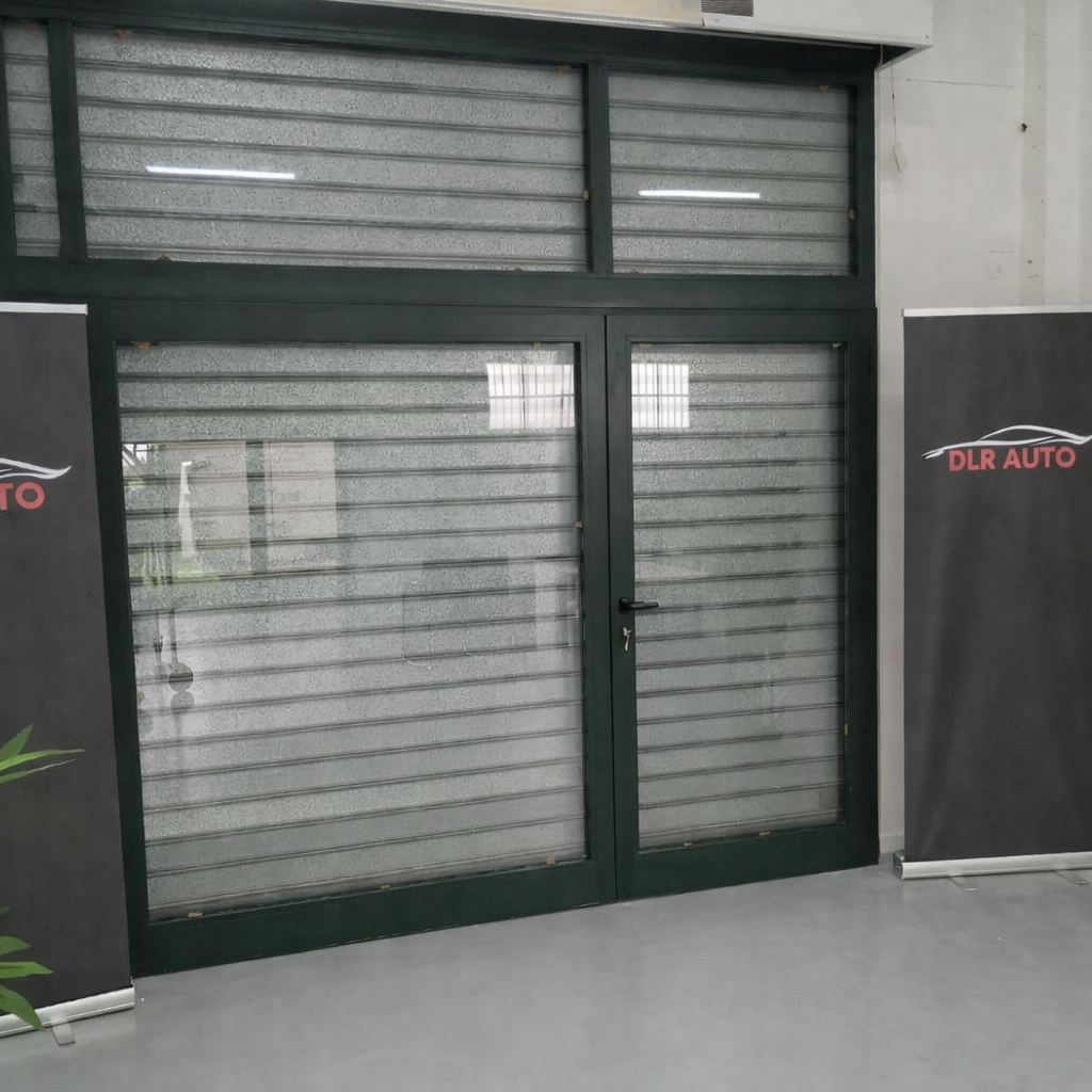 15. Vetrate ingresso due ante apribili, colore verde marezzato e vetro antifortunio