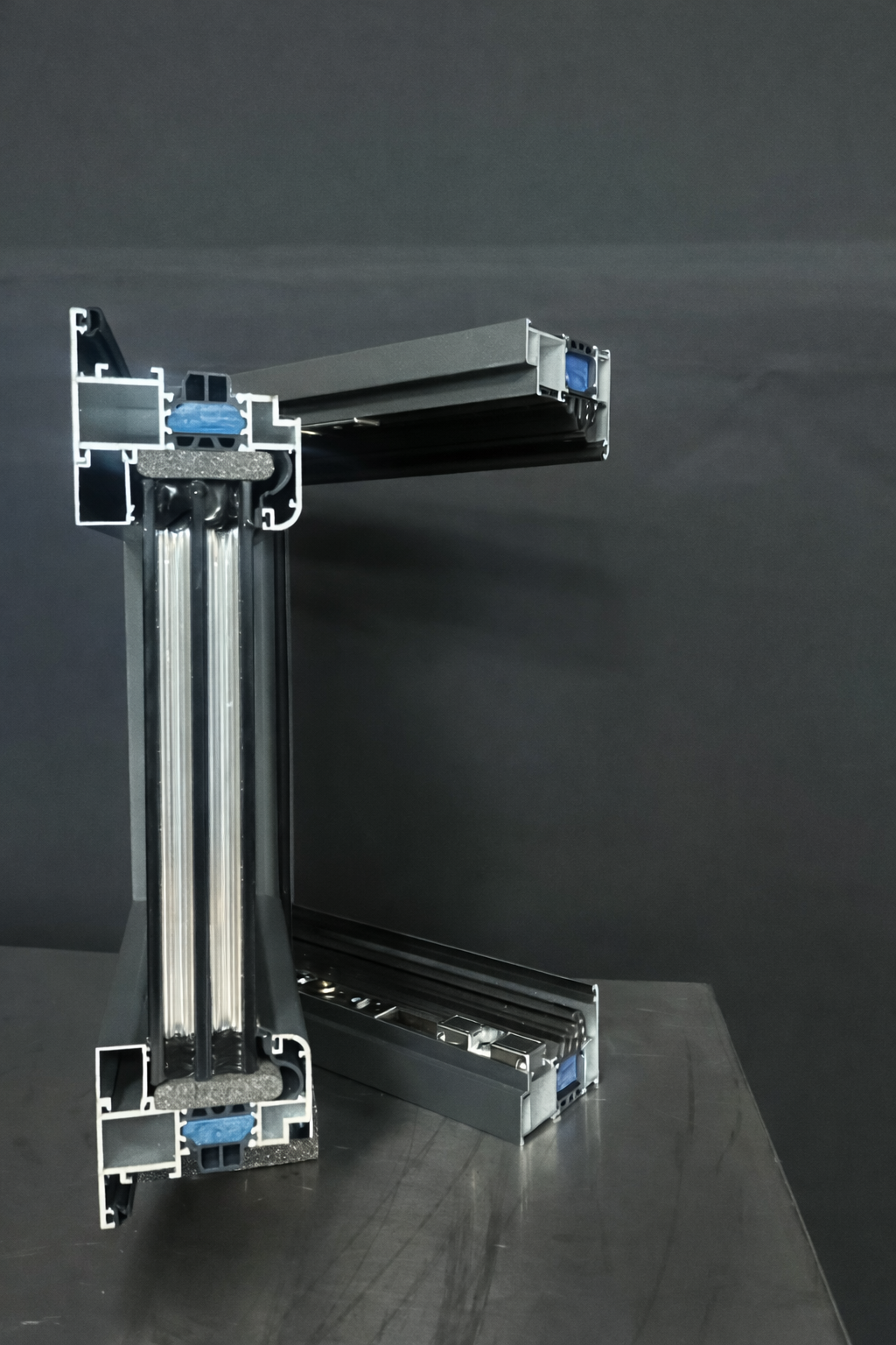 Spessore del profilo: 1,8 mm, con rinforzo a 2,8 mm nelle zone soggette a carico; materiale: alluminio 6063-T5.